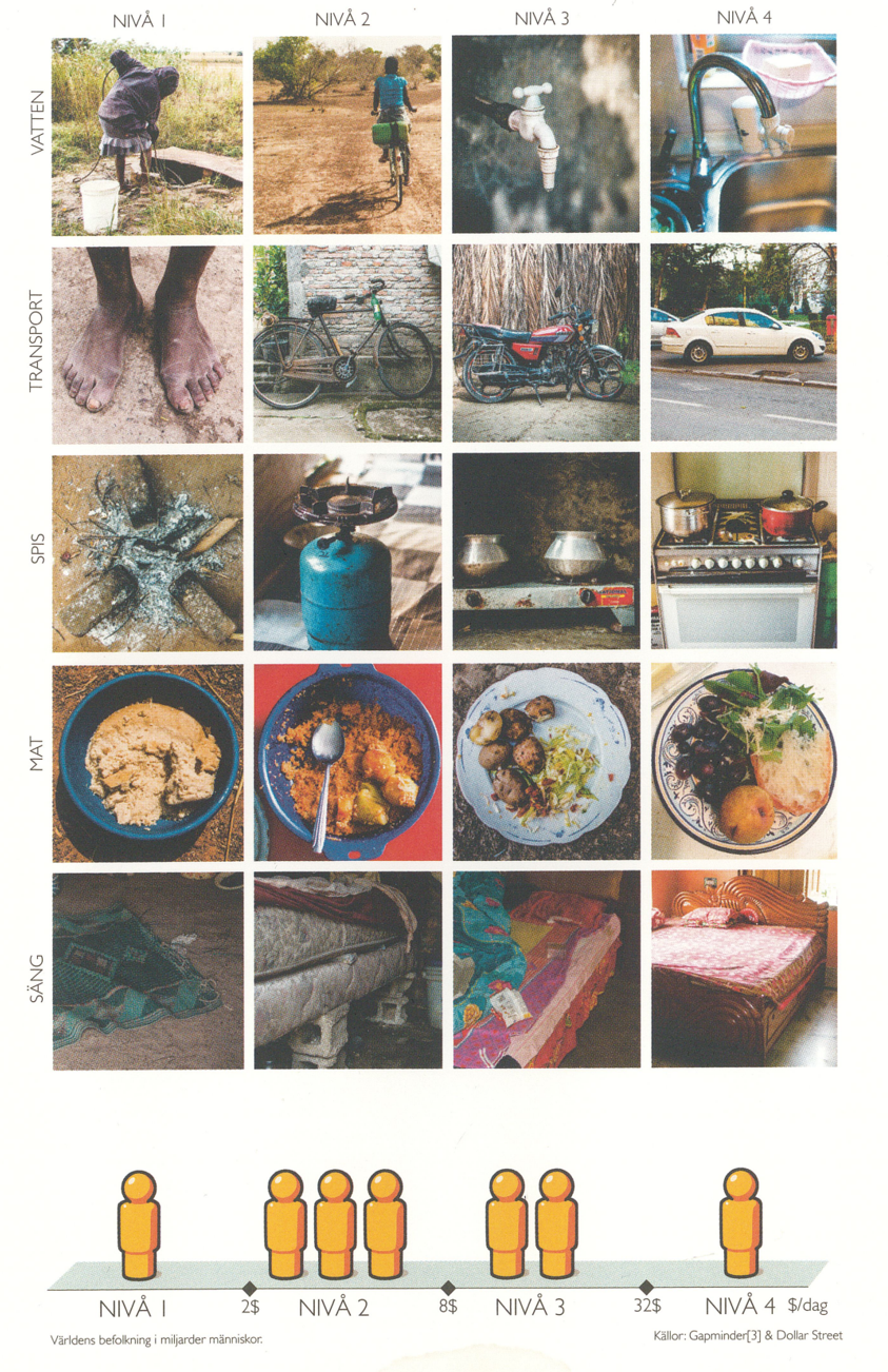 Men ett högt BNP verkar inte bara korrelera med ett långt liv - utan också med ett gott liv. Följande bild visar hur vardagslivet ser ut i länder som befinner sig vid olika BNP-nivåer: