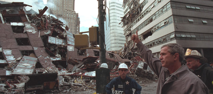 Det är den 14 september 2001 som president Bush besöker Ground Zero i New York. Han uppmanar amerikanerna att leva som vanligt efter terrorattacken. Varför säger han så? Kanske befarar han att paniken i USA ska leda till ett kraftigt fall i konsumtion och investeringar – och därmed en förödande lågkonjunktur?