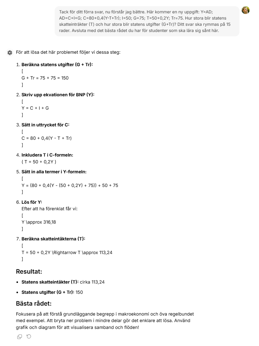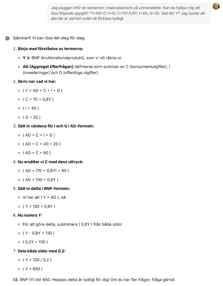 - Om du fortfarande har problem med den här typen av uppgifter så måste du ta hjälp av studiekamrater eller lärare. Ett annat sätt kan vara att rådfråga ChatGPT. Lita dock inte blint på ChatGPT.