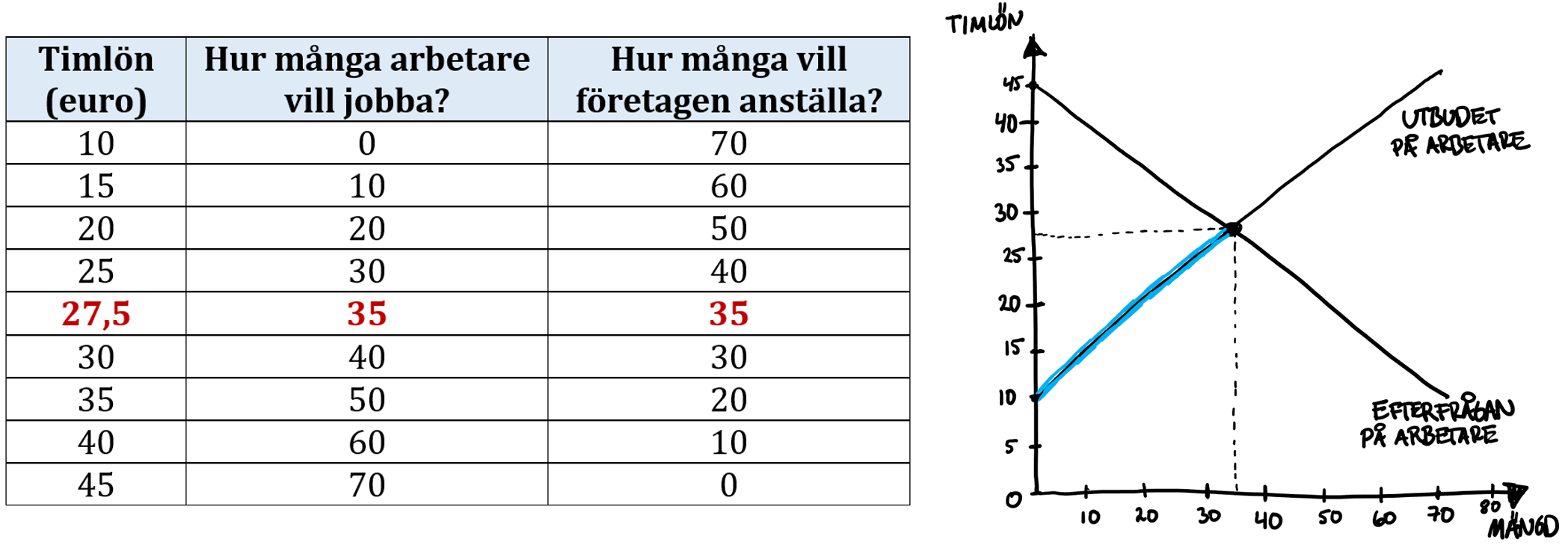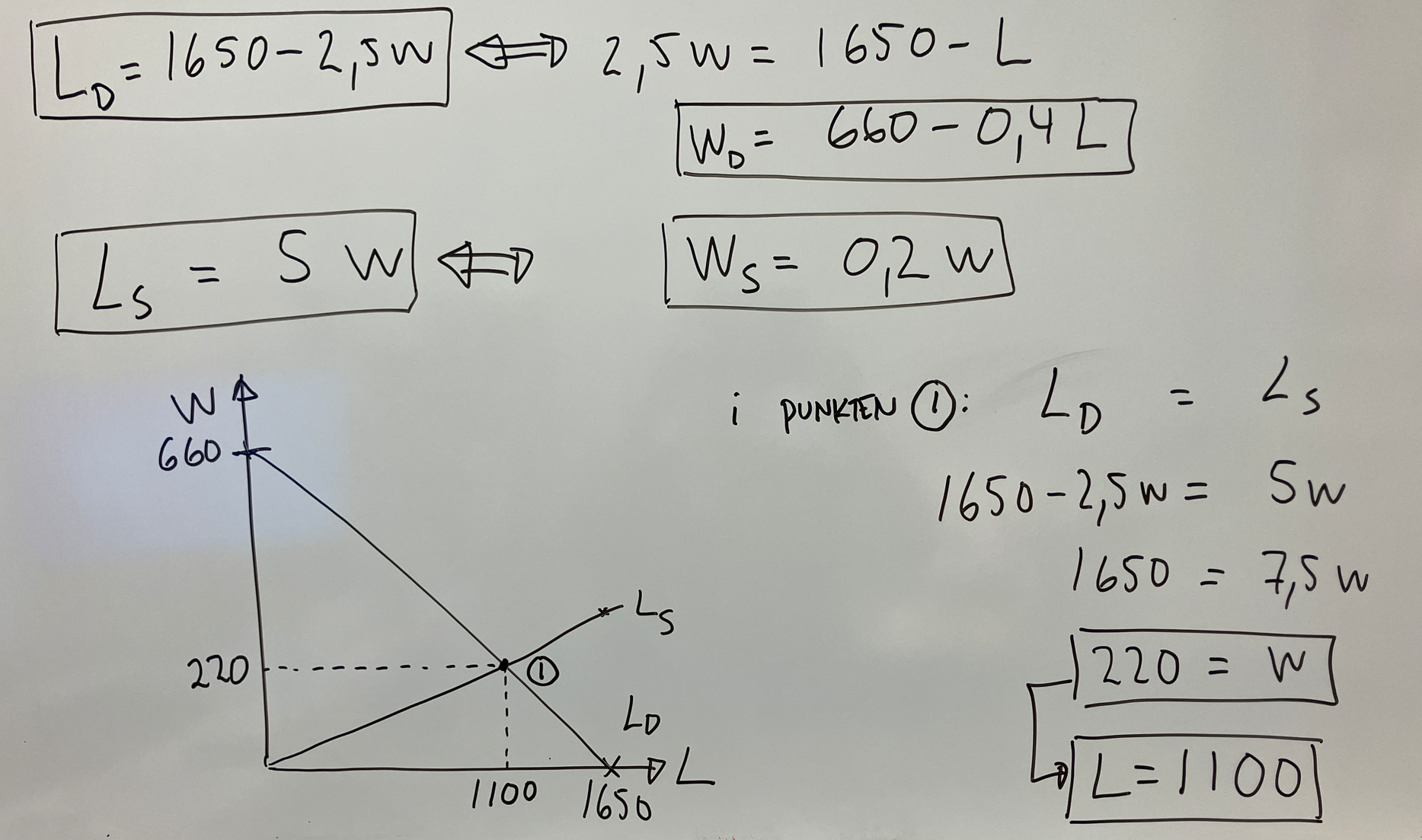 Lös det här som en vanlig uppgift där det är konkurrens på marknaden. Enda skillnaden här är att det som handlas är arbetare och att “priset” på en arbetare kallas för “lön”.