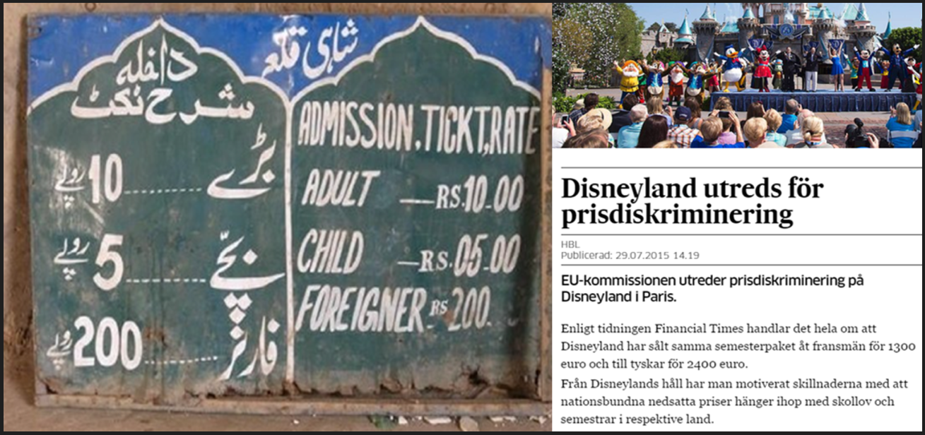 - Vilka tre kriterier måste vara uppfyllda för att prisdiskriminering ska vara möjlig? Tror du att dessa antaganden är uppfyllda i det här aktuella fallet?