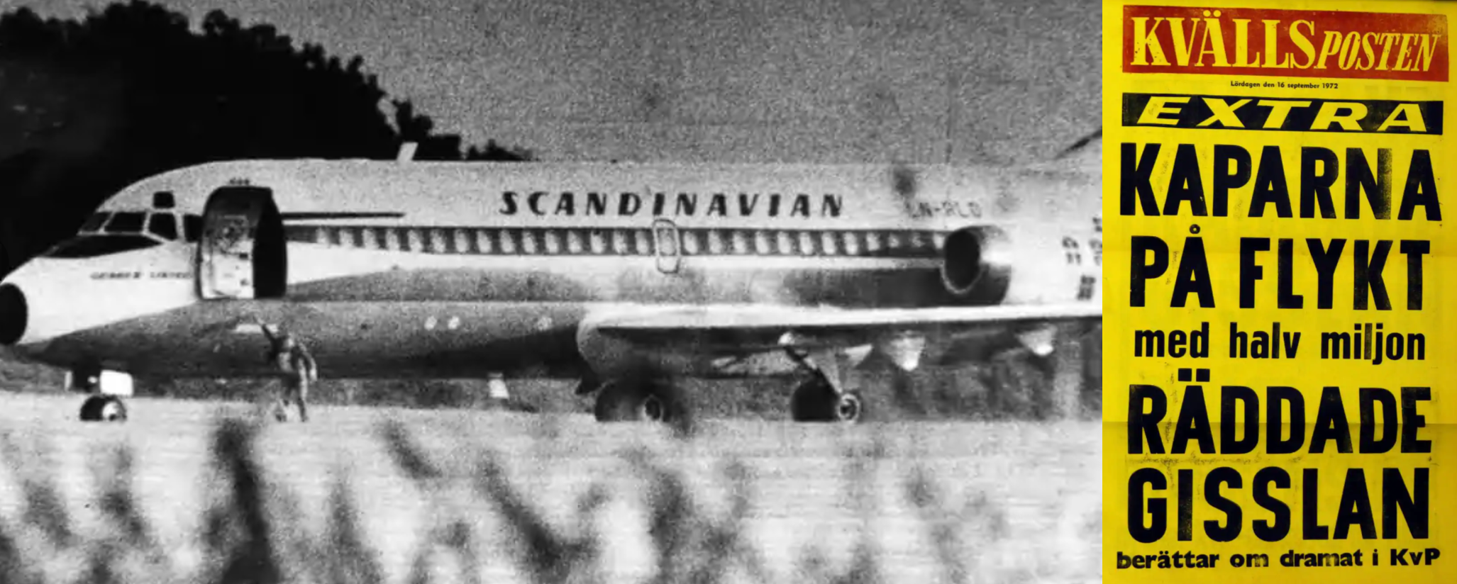 2. Flygplanskapningar. I september 1972 kapade högerextrema kroater ett flygplan mellan Göteborg och Stockholm. Deras krav var att sju morddömda landsmän skulle friges och att planet skulle flyga dem till friheten i Spanien, tillsammans med en halv miljon kronor i kontanter. Den svenska regeringen accepterade terroristernas krav, trots att de alltid sagt att de aldrig skulle förhandla med terrorister. Tanken på 90 döda svenskar blev för mycket. På kort sikt blev det ett lyckligt slut. På lång sikt skickade politikerna en farlig signal till alla världens terrorister att det lönar sig att kapa flygplan.