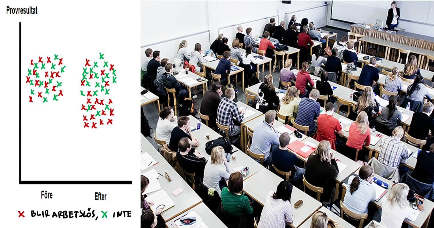 - Att vara arbetslös verkar leda till att dina kunskaper försämras. Edin & Gustavsson (2008) analyserar resultaten från ett stort svenskt kunskapstest. Efteråt blev vissa av provdeltagarna av med jobbet. Några år senare fick alla skriva om samma prov. Det visade sig då att de arbetslösa presterande betydligt sämre på provet. Bland dem som haft jobb hela tiden märktes däremot ingen nedgång i provresultatet.