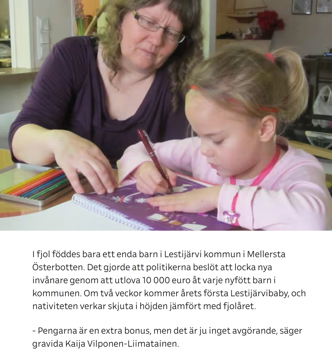 - Hela artikeln om Lestijärvi kan du läsa här. Var femte kommun i Finland betalar babybonusar till familjer och i enstaka kommuner uppgår summan till tiotusen euro (källa här). Om du vill se antalet barn per kvinna i världen över tid finns det intressanta figurer här.